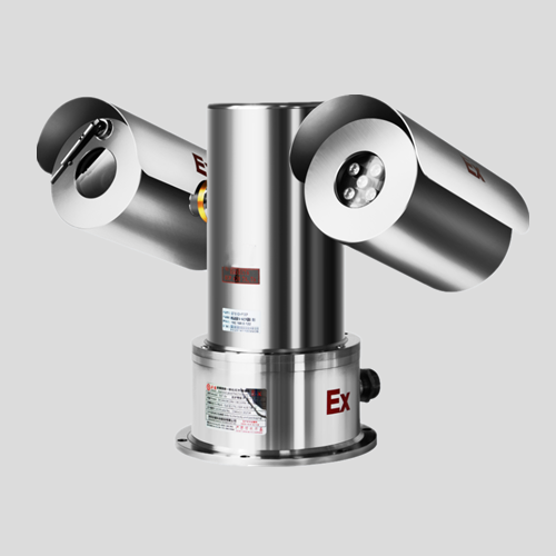 熱成像雙筒防爆云臺攝像機高度集成防爆云臺、彩色攝像機、紅外熱成像、解碼器,采用不銹鋼材質(zhì),一體化簡潔設(shè)計,適用于多種可燃性氣體或粉塵存在的危險惡劣環(huán)境。